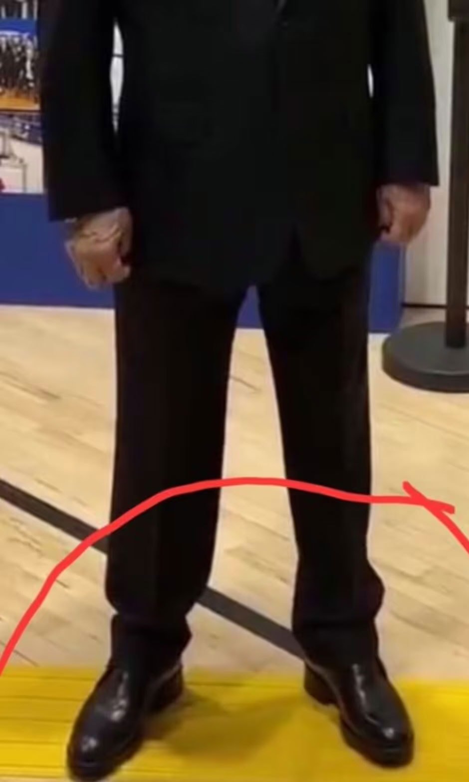 Normal boylu bir kadın, Putin’in hemen yanına konumlandırıldı. Kadın, Rus liderin 2 santimetrelik topuk yükseltilerinin üstünde olmasına rağmen Putin’in başının epey üzerinde kaldı.