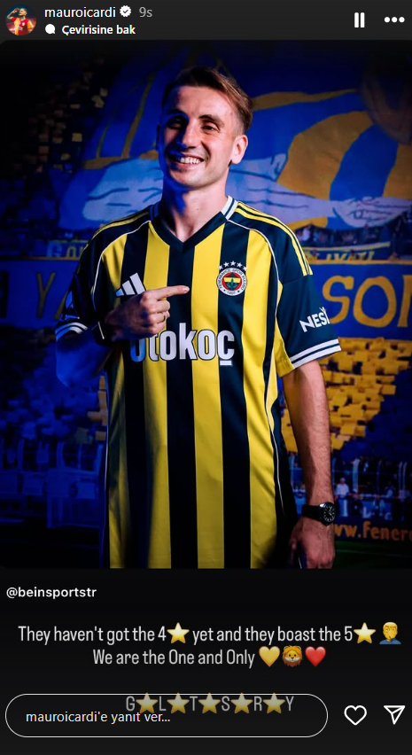 Süper Lig devi Fenerbahçe’nin Kerem Aktürkoğlu’nu transfer etmesinin ardından ezeli rakip Galatasaray’ın yıldız ismi Mauro Icardi’den flaş bir paylaşım daha geldi.